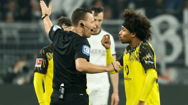 虎扑12月21日讯(图)多特蒙德球员阿德耶米向德甲裁判斯文·雅布隆斯基表示不满